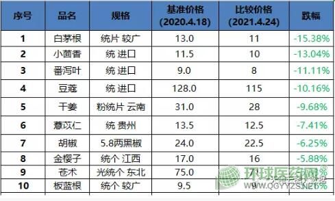 表2:市場(chǎng)跌價(jià)品種TOP10