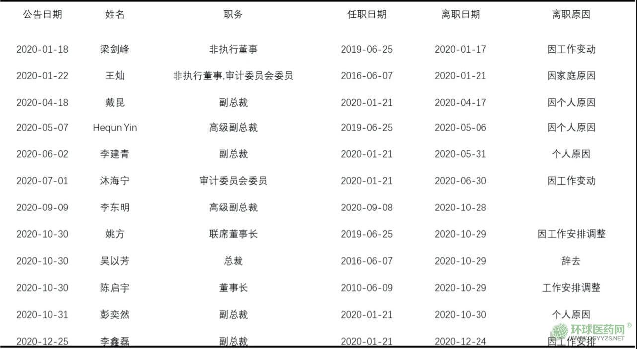 2020年,最值得關(guān)注的就是復(fù)星醫(yī)藥過于頻繁的高管離職變動。2020年全年發(fā)出離職公告的就有12人,崗位涉及副總裁、總裁、董事長等等。劇烈的人事震蕩不可避免地引起外界的很多猜測,加重了資本市場的疑慮。但復(fù)星醫(yī)藥并未對此予以正面回應(yīng)。
