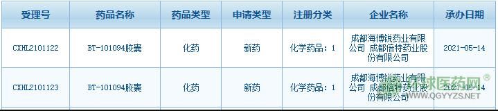 圖1:BT-101094膠囊新藥臨床申請(qǐng)情況