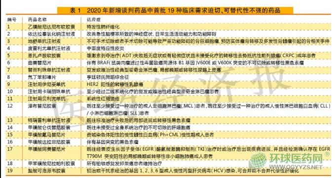 在《指導(dǎo)意見》發(fā)布前10天,國家醫(yī)保局協(xié)同國家衛(wèi)健委就已經(jīng)組織專家從2020年新增的談判藥品中篩選了19種符合這個(gè)原則的藥品并予以發(fā)布。仔細(xì)解讀這19個(gè)品種及其適應(yīng)癥,可以發(fā)現(xiàn)這些品種正屬于DTP藥房的主要經(jīng)營范疇(詳見表1)。