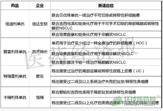 四大國產(chǎn)PD-1藥物新增適應(yīng)癥情況