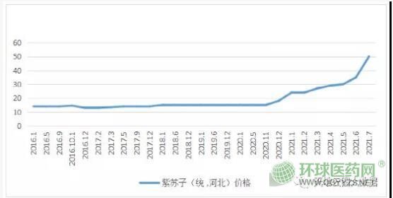 圖1:紫蘇子2016-2021年市場價(jià)格走勢