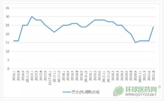 圖:百合2016-2021年市場價格走勢圖(龍山百合,統(tǒng))