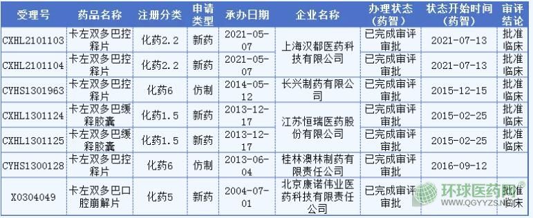 卡左雙多巴國內(nèi)仿制藥申報注冊詳情