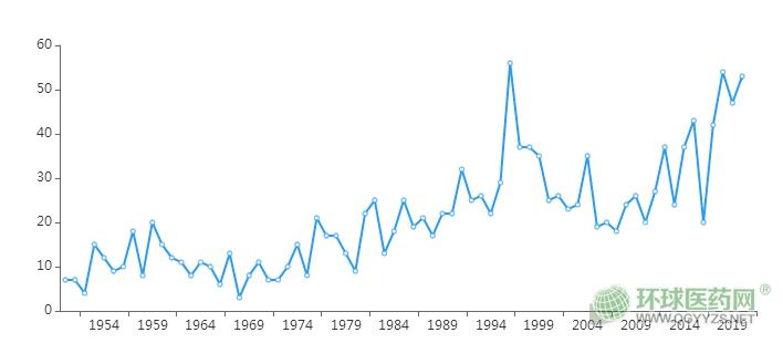 1950年-2020年美國(guó)批準(zhǔn)的新分子實(shí)體統(tǒng)計(jì)