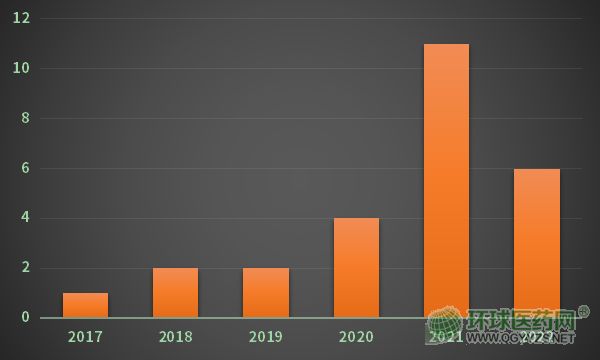 2017-2022年中藥創(chuàng)新藥獲批上市數(shù)量