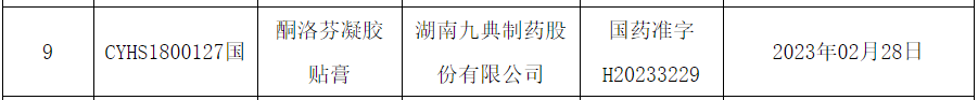 3月3日,NMPA官網(wǎng)發(fā)布藥品批準(zhǔn)證明文件,國(guó)家藥品監(jiān)督管理局批準(zhǔn)湖南九典制藥的酮洛芬凝膠貼膏上市。