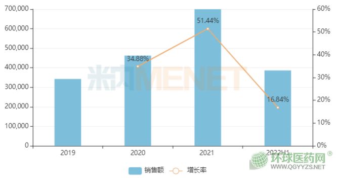 不僅如此,近年來貝伐珠單抗在國內(nèi)市場的表現(xiàn)也非常亮眼,持續(xù)保持兩位數(shù)的增速。米內(nèi)網(wǎng)數(shù)據(jù)顯示,2021年貝伐珠單抗在中國城市公立醫(yī)院、縣級公立醫(yī)院、城市社區(qū)中心以及鄉(xiāng)鎮(zhèn)衛(wèi)生院(簡稱中國公立醫(yī)療機構(gòu))終端的銷售額逼近70億元,同比增長51.44%;2022年上半年其銷售額超過38億元,同比增長16.84%。