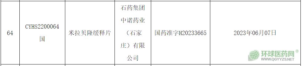 6月12日,國(guó)家藥品監(jiān)督管理局官網(wǎng)顯示,石藥集團(tuán)中諾藥業(yè)的米拉貝隆緩釋片獲批上市。目前,國(guó)內(nèi)已有4家企業(yè)的米拉貝隆緩釋片獲批并過(guò)評(píng)。