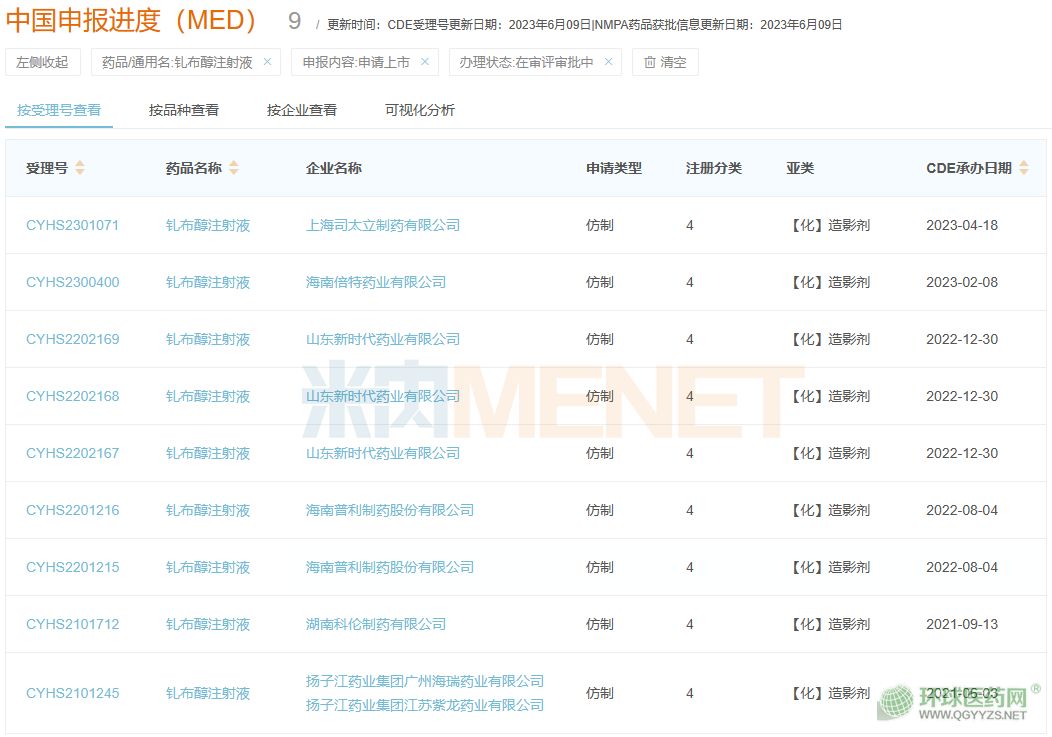 米內(nèi)網(wǎng)數(shù)據(jù)顯示,目前國(guó)內(nèi)有3家企業(yè)擁有釓布醇注射液的生產(chǎn)批文,即原研企業(yè)拜耳、恒瑞醫(yī)藥和北陸藥業(yè)。本月,據(jù)CDE官網(wǎng)顯示,揚(yáng)子江藥業(yè)集團(tuán)廣州海瑞藥業(yè)的釓布醇注射液以仿制4類(lèi)報(bào)產(chǎn)獲受理。