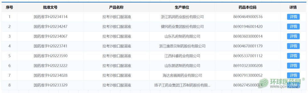 據(jù)了解,拉考沙胺最早于2008年在歐盟獲批上市,作為治療部分性發(fā)作癲癇成年和青少年患者(16到18歲,有或沒有繼發(fā)全身性發(fā)作)的輔助療法。拉考沙胺片于2018年11月獲批進入國內(nèi)市場,拉考沙胺口服溶液于2020年7月在國內(nèi)獲批。經(jīng)國家藥品監(jiān)督管理局網(wǎng)站查詢獲悉,國內(nèi)有8家制劑企業(yè)(含公司)獲得拉考沙胺口服溶液批準(zhǔn)文號。