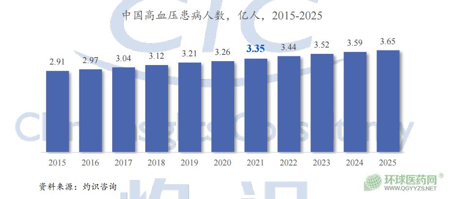 隨著中國(guó)已進(jìn)入老齡化社會(huì),正在進(jìn)入深度老齡化社會(huì)(65歲及以上人口占比超過14%),我國(guó)中老年人群高血壓患病率顯著高于全人群患病率。隨著老齡人口數(shù)量的上升,高血壓患者人數(shù)預(yù)計(jì)將在未來一段時(shí)間內(nèi)進(jìn)一步攀升。根據(jù)灼識(shí)咨詢統(tǒng)計(jì)與預(yù)測(cè),我國(guó)高血壓患病人數(shù)呈逐年上升趨勢(shì),從1959年的5.1%增長(zhǎng)到2015年的23.2%,預(yù)計(jì)到2025年,我國(guó)將有3.65億高血壓患病人群。