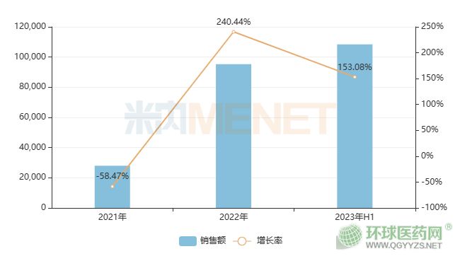 米內(nèi)網(wǎng)數(shù)據(jù)顯示,近兩年奧司他韋保持三位數(shù)增長(zhǎng)態(tài)勢(shì),2023上半年銷售額達(dá)到15億元以上,再創(chuàng)銷售新高峰,宜昌東陽(yáng)光長(zhǎng)江藥業(yè)的磷酸奧司他韋顆粒成為該品種唯一破10億的品牌。