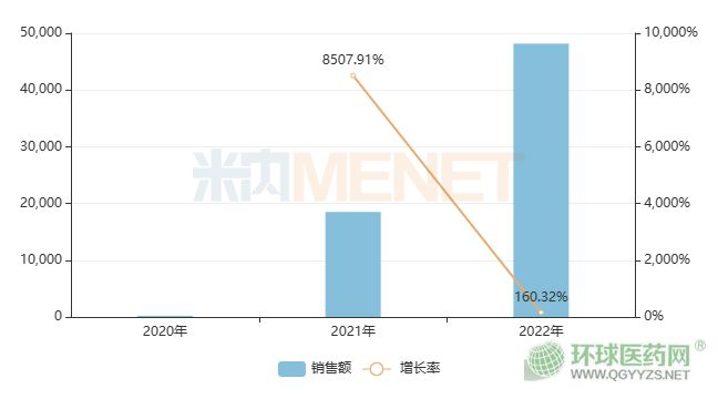 富馬酸伏諾拉生片進(jìn)入國家醫(yī)保目錄后開始快速放量,2021年銷售額暴漲超8000%;2022年在中國城市公立醫(yī)院、縣級公立醫(yī)院、城市社區(qū)中心及鄉(xiāng)鎮(zhèn)衛(wèi)生院(簡稱中國公立醫(yī)療機(jī)構(gòu))機(jī)構(gòu)終端的銷售額已超過4.8億元,同比大漲160.32%,并在治療與胃酸分泌相關(guān)疾病藥物內(nèi)服產(chǎn)品榜單排名升至TOP8。