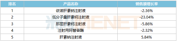 2022年中國公立醫(yī)療機(jī)構(gòu)終端抗血栓形成藥注射劑TOP5產(chǎn)品