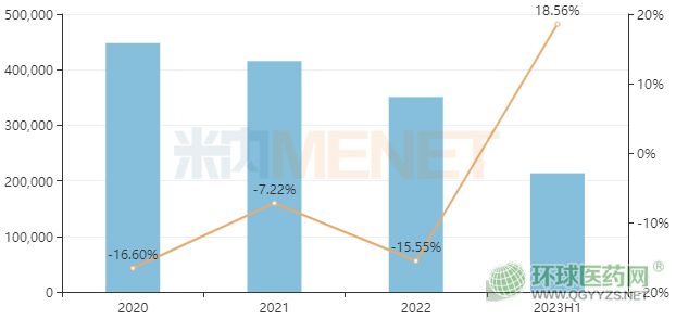 根據(jù)米內(nèi)網(wǎng)統(tǒng)計(jì)數(shù)據(jù)顯示,2022年,伏立康唑在中國城市公立醫(yī)院、縣級公立醫(yī)院、城市社區(qū)中心以及鄉(xiāng)鎮(zhèn)衛(wèi)生院(簡稱中國公立醫(yī)療機(jī)構(gòu))終端的銷售額超過35億元,同比下滑15.55%;2023H1其銷售額超過21億元,同比增長18.56%。