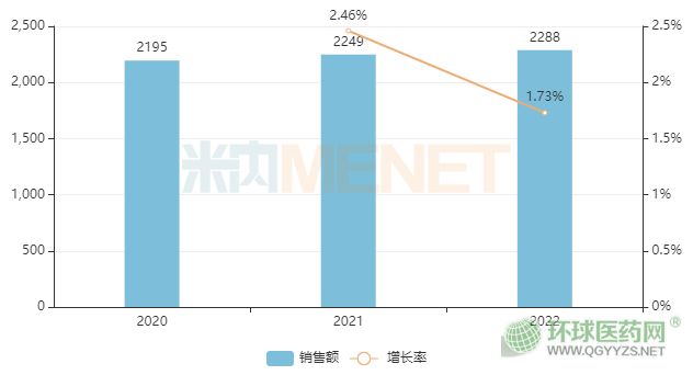 根據(jù)米內(nèi)數(shù)據(jù)庫(kù),2022年,阿普米司特片全球銷售額達(dá)22.88億美元。