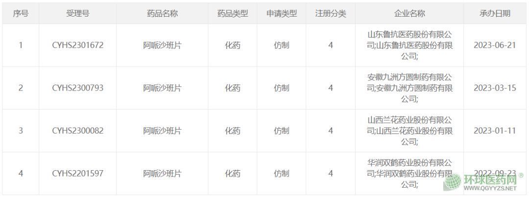 除此之外,根據(jù)國家藥品監(jiān)督管理局藥品審評中心(CDE)官網(wǎng)檢索顯示,阿哌沙班片還有華潤雙鶴藥業(yè)、山西蘭花藥業(yè)、安徽九洲方圓制藥、山東魯抗醫(yī)藥4家藥企提交了仿制申請,均在審評審批中。