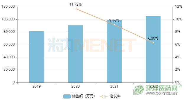 米內(nèi)網(wǎng)數(shù)據(jù)顯示,近年來多巴絲肼片在中國三大終端六大市場的銷售額逐年上漲,2022年突破10億元,同比增長約6%。