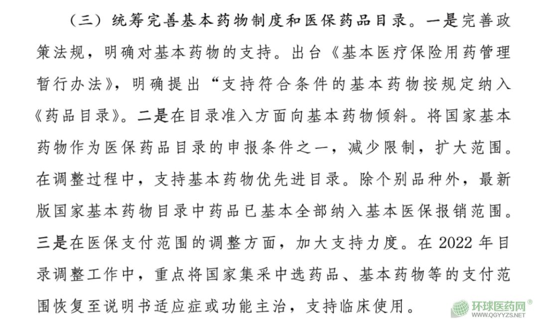 國家醫(yī)保局回復(fù),將在目錄調(diào)整準(zhǔn)入方面向基本藥物傾斜,將國家基本藥物作為醫(yī)保藥品目錄的申報條件之一,減少限制,擴(kuò)大范圍。在調(diào)整過中,支持基本藥物優(yōu)先進(jìn)目錄。同時,在醫(yī)保支付范圍方面加大支持力度。在2022年目錄調(diào)整工作中,重點將國家集采中選藥品、基本藥物等的支付范圍恢復(fù)至說明書適應(yīng)癥或功能主治,支持臨床使用。