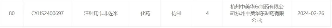 2月26日,CDE官網(wǎng)最新公示顯示,杭州中美華東制藥以仿制4類提交的注射用卡非佐米上市申請獲得CDE承辦受理。目前,國內還未有注射用卡非佐米仿制藥獲批上市。