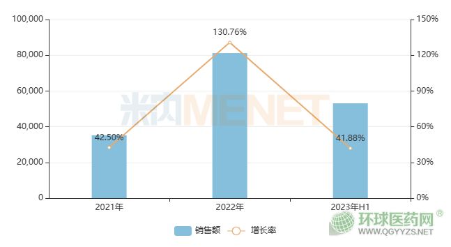 米內(nèi)網(wǎng)中國公立醫(yī)療機(jī)構(gòu)終端銷售數(shù)據(jù)顯示,鹽酸納布啡注射液近年迎來較大漲幅,2022年銷售額達(dá)到峰值8.1億元,同比增長130.76%,2023年上半年銷售額接近6億元,同比增長41.88%,有望繼續(xù)保持較快增速。