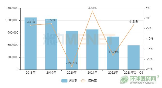 不過,去年有4個新上榜品種備受矚目,包括了頭孢他啶阿維巴坦、頭孢噻肟、頭孢拉定和頭孢泊肟酯。其中,頭孢他啶阿維巴坦已談判成功進入了2023版國家醫(yī)保目錄,米內(nèi)網(wǎng)數(shù)據(jù)顯示,2023年Q1-Q3頭孢他啶阿維巴坦的銷售額漲至3.5億元,該產(chǎn)品后續(xù)有望迎來新的銷售放量期。
