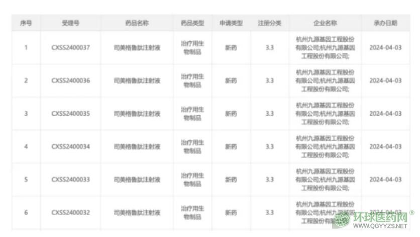 2024年4月,九源基因遞交了司美格魯肽生物類似藥的上市申請,成為國內首家報產該藥物的企業(yè)。其申報的適應癥為成人2型糖尿病患者的血糖控制。