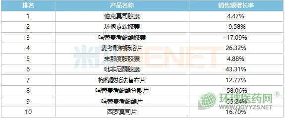 2023年中國公立醫(yī)療機構終端內服免疫抑制劑產品TOP10