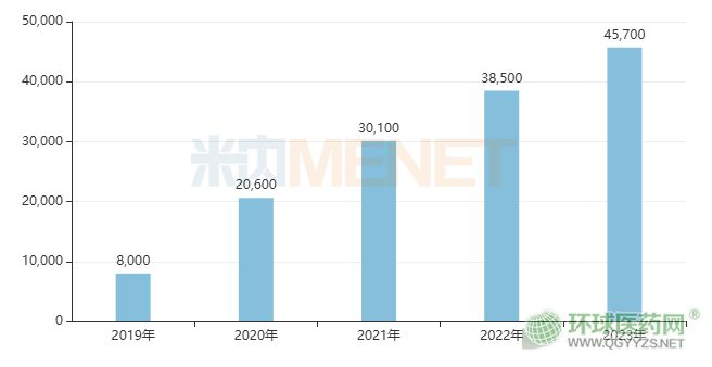 米內網數(shù)據顯示,原研的苯磺酸美洛加巴林片上市以來,在全球的銷售額持續(xù)飆漲,2019-2023年累計銷售達1429億日元(即時匯率換算約10億美元),僅2023年也超過3億美元。
