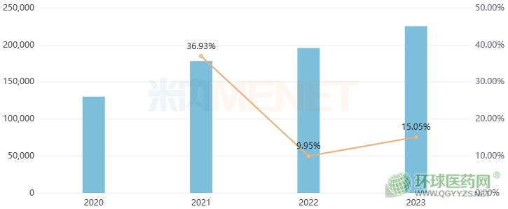 米內網數(shù)據(jù)顯示,近十年來重酒石酸去甲腎上腺素注射液市場呈現(xiàn)高速增長態(tài)勢,2023年在中國城市公立醫(yī)院、縣級公立醫(yī)院、城市社區(qū)中心以及鄉(xiāng)鎮(zhèn)衛(wèi)生院(簡稱中國公立醫(yī)療機構)終端銷售額超過22億元,同比增長15.05%。