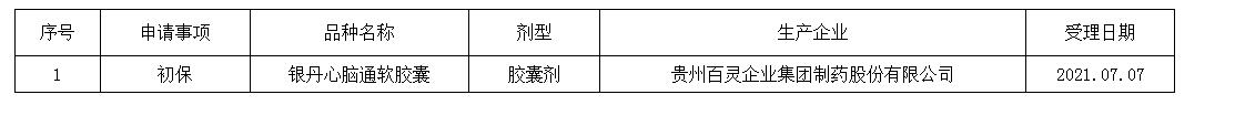 2021年7月7日中藥品種保護受理公示
