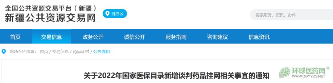昨日,新疆公共資源交易網(wǎng)發(fā)布《新疆維吾爾自治區(qū)關(guān)于2022年國家醫(yī)保目錄新增談判藥品掛網(wǎng)相關(guān)事宜的通知》。