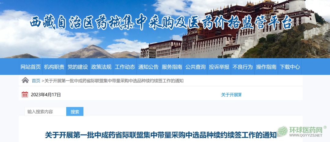 日前,西藏自治區(qū)藥械集中采購(gòu)及醫(yī)藥價(jià)格監(jiān)管平臺(tái)發(fā)布《關(guān)于開(kāi)展第一批中成藥省際聯(lián)盟集中帶量采購(gòu)中選品種續(xù)約續(xù)簽工作的通知》,開(kāi)展中選品種續(xù)約續(xù)簽工作。