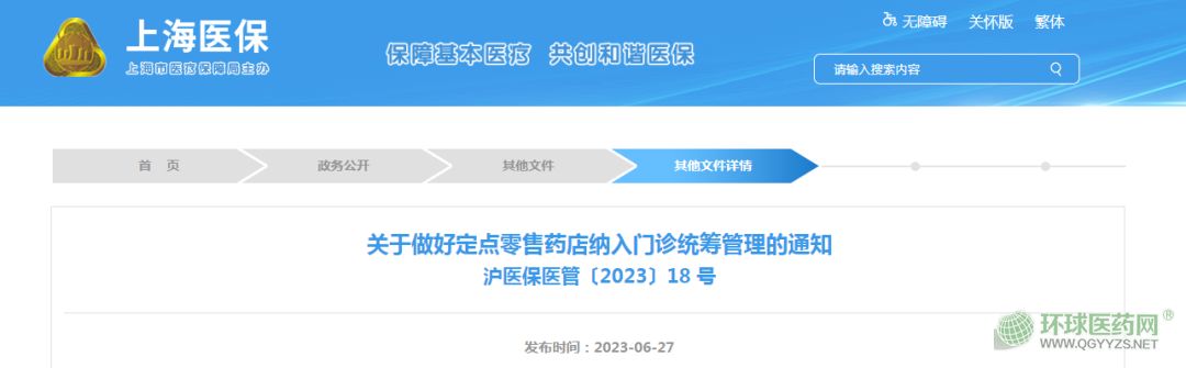 6月27日,上海市醫(yī)療保障局、上海市衛(wèi)生健康委員會、上海市藥品監(jiān)督管理局聯(lián)合發(fā)布《關(guān)于做好定點零售藥店納入門診統(tǒng)籌管理的通知》。