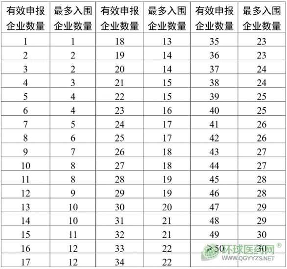 1.1規(guī)則一:A、B競價單元內,按有效申報企業(yè)競價比價價格由低到高排序,確定入圍企業(yè)。入圍企業(yè)的產品競價比價價格不高于最高有效申報價(具體另行公告)。最多入圍企業(yè)數(shù)量詳見下表。