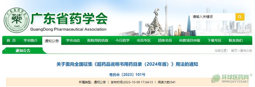 10月9日,廣東省藥學(xué)會(huì)官網(wǎng)發(fā)出關(guān)于面向全國(guó)征集《超藥品說(shuō)明書(shū)用藥目錄(2024年版)》用法的通知。