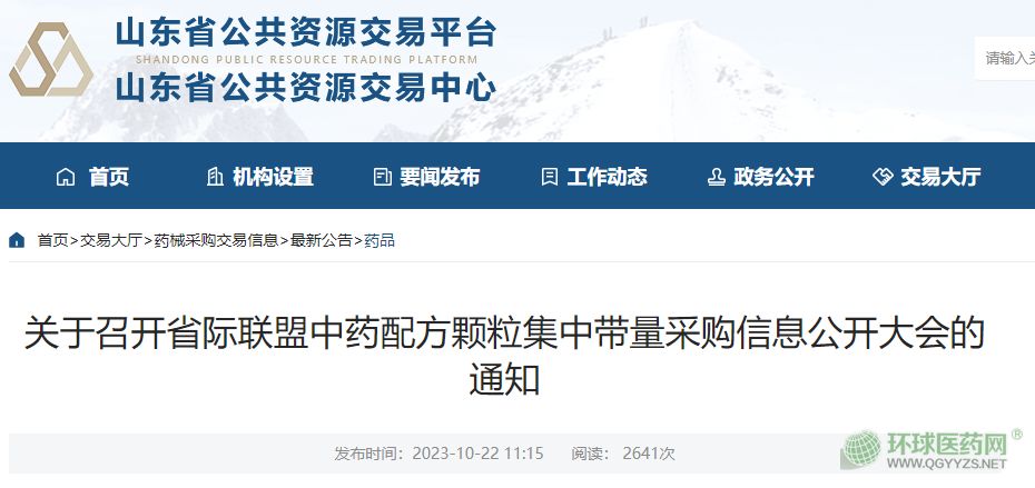10月22日,山東省公共資源交易中心下發(fā)了《關于召開省際聯(lián)盟中藥配方顆粒集中帶量采購信息公開大會的通知》。通知內容顯示,在10月27日08:30—17:00的德州市鳳冠假日酒店召開省際聯(lián)盟中藥配方顆粒集中帶量采購信息公開大會。