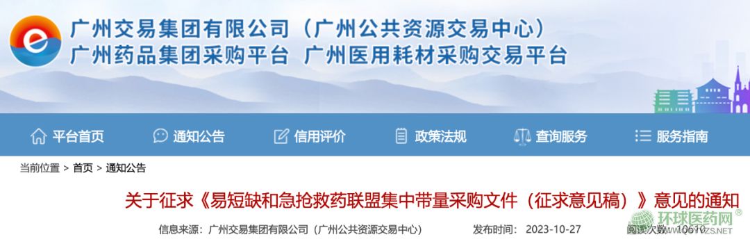 近日,廣州藥品采購平臺(tái),發(fā)布易短缺、急搶救藥品帶量采購征求意見稿。