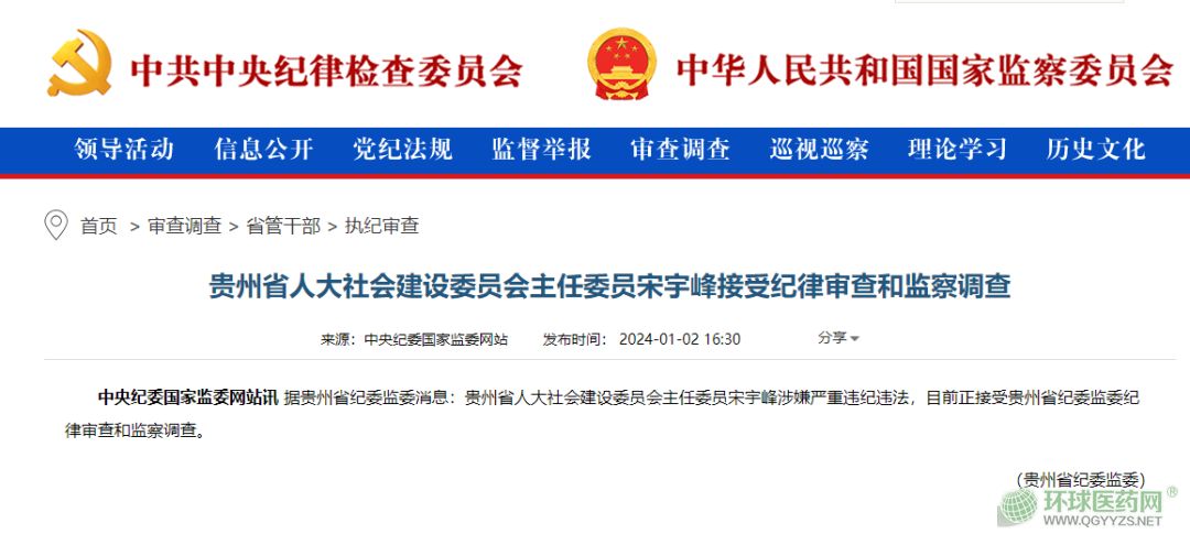 其中,曾任貴州省醫(yī)療保障局局長(zhǎng)、黨組書(shū)記的宋宇峰,于1月2日被審查調(diào)查。