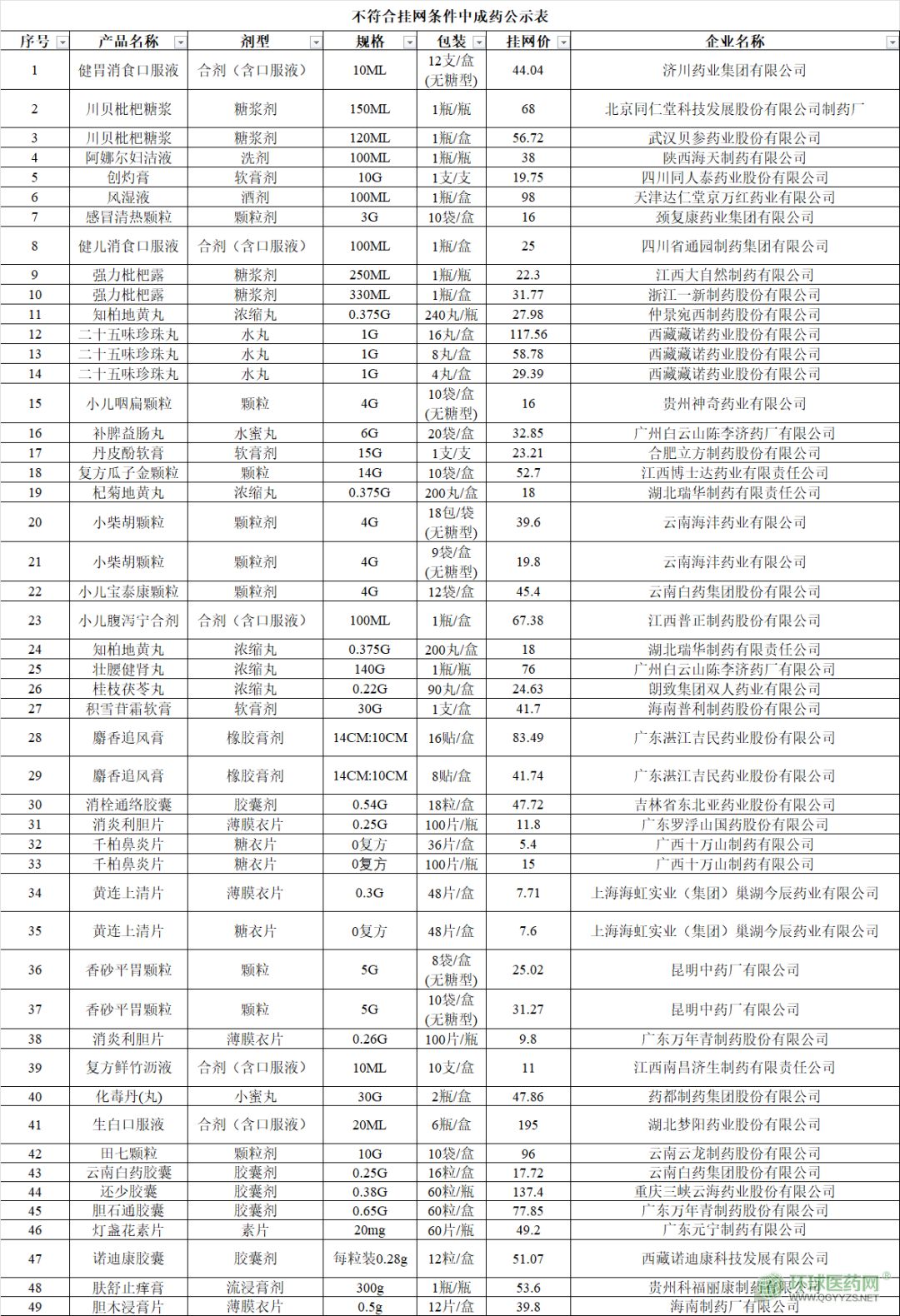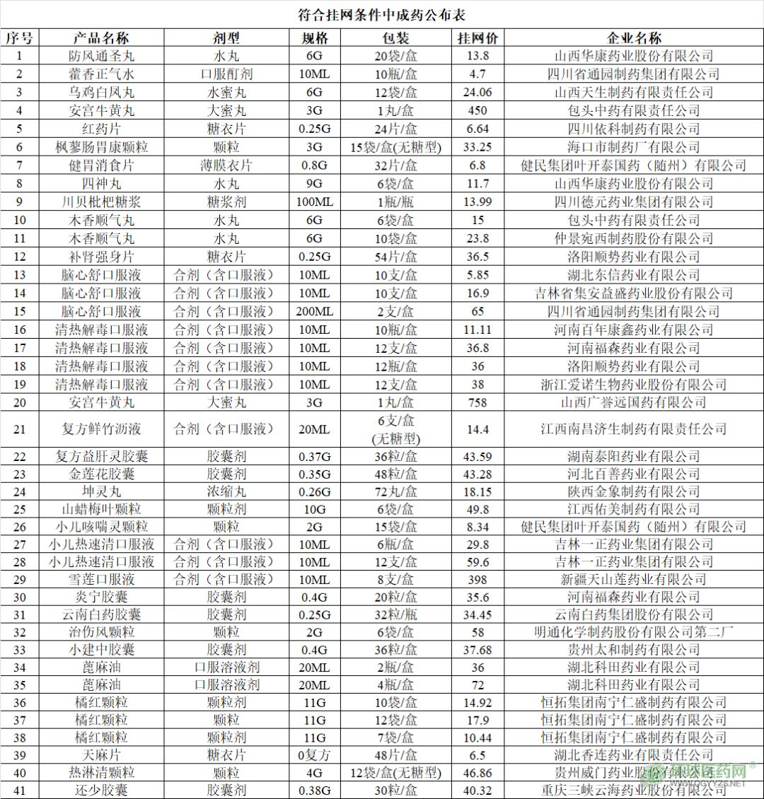 其中,符合掛網(wǎng)條件的中藥品種為41個,不符合掛網(wǎng)條件的中藥品種為49個。