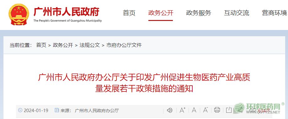 廣州市人民政府辦公廳印發(fā)了《廣州促進生物醫(yī)藥產業(yè)高質量發(fā)展的若干政策措施》(全文見文末)。