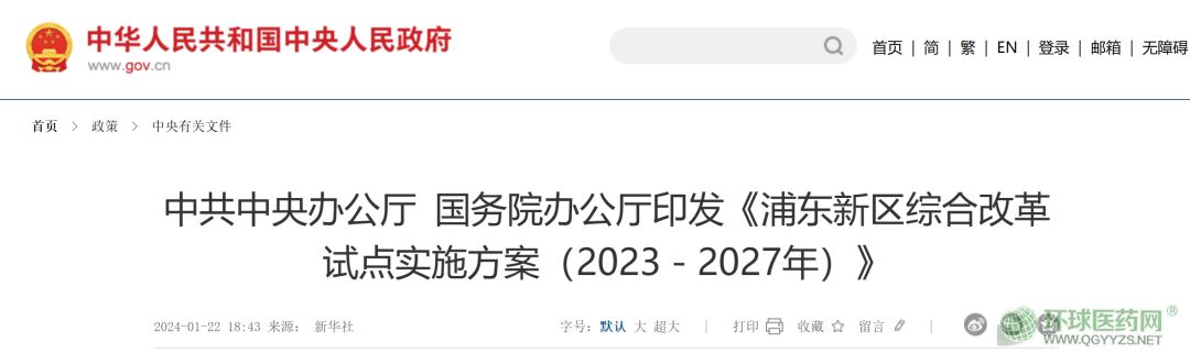 2024年1月22日,中共中央辦公廳、國(guó)務(wù)院辦公廳印發(fā)《浦東新區(qū)綜合改革試點(diǎn)實(shí)施方案(2023-2027年)》發(fā)布,整體分為7個(gè)部分,共23項(xiàng)政策。其中與醫(yī)藥相關(guān)有新藥自主定價(jià)、人工智能、持續(xù)優(yōu)化藥品管理等3條。
