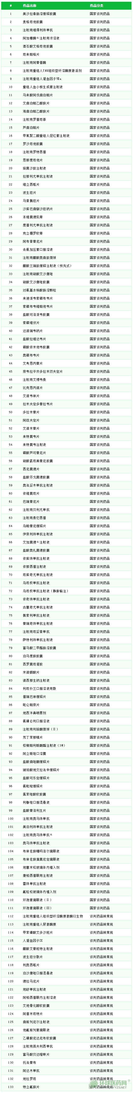 重慶市醫(yī)保局發(fā)布《重慶市醫(yī)療保障局辦公室關(guān)于公布國家醫(yī)保談判藥品門診保障用藥名單的通知》,將重慶市醫(yī)療保險國談藥品門診保障用藥名單予以公布,共有 133 個品種,具體如下,大家看看自己的在名單中嗎?