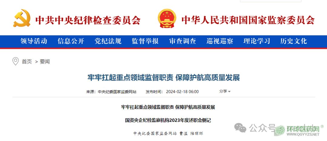 2月 18 日,據(jù)中央紀(jì)委國家監(jiān)委網(wǎng)站報道,日前,來自中央紀(jì)委國家監(jiān)委駐國務(wù)院國資委紀(jì)檢監(jiān)察組和 54 家中管企業(yè)紀(jì)檢監(jiān)察機構(gòu)的負(fù)責(zé)同志在中央紀(jì)委國家監(jiān)委機關(guān),集中利用一天時間,逐一對 2023 年度履職情況進行述職發(fā)言。