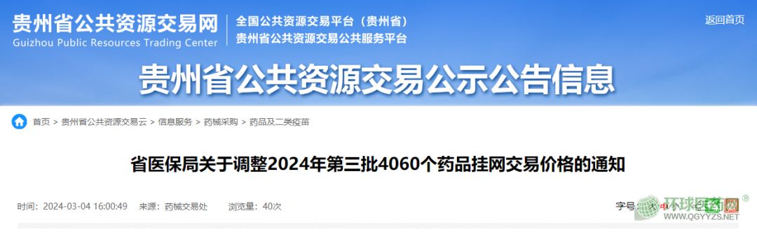 近日,貴州省醫(yī)療保障局發(fā)布《省醫(yī)保局關(guān)于調(diào)整2024年第三批4060個(gè)藥品掛網(wǎng)交易價(jià)格的通知》(下稱(chēng)《通知》),于2024年3月6日起正式執(zhí)行調(diào)整后的藥品價(jià)格。
