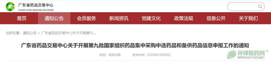 近日,廣東省藥品交易中心發(fā)布關(guān)于開展第九批國家組織藥品集中采購中選藥品和備供藥品信息申報工作的通知。申報時間為即日起至2024年3月11日。