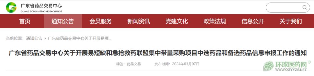 根據(jù)相關(guān)工作部署和工作安排,為做好廣東省第三方藥品電子交易平臺易短缺和急搶救藥聯(lián)盟集中帶量采購(以下簡稱易短缺和急搶救藥集采)工作,現(xiàn)開展易短缺和急搶救藥集采中選藥品和備選藥品信息申報工作,具體事項通知如下: