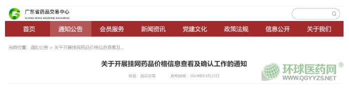 近日,廣東省藥品交易中心發(fā)布《關(guān)于開展掛網(wǎng)藥品價(jià)格信息查看及確認(rèn)工作的通知》(下稱《通知》),要求各相關(guān)企業(yè)在2024年3月27日17:30前對掛網(wǎng)藥品聯(lián)動價(jià)格信息進(jìn)行確認(rèn);聯(lián)動價(jià)格信息確認(rèn)時(shí)間截止后,將按照現(xiàn)行國家和省級部門有關(guān)政策規(guī)定對企業(yè)的價(jià)格確認(rèn)情況和異議反饋材料統(tǒng)一核查并調(diào)整掛網(wǎng)價(jià)格。