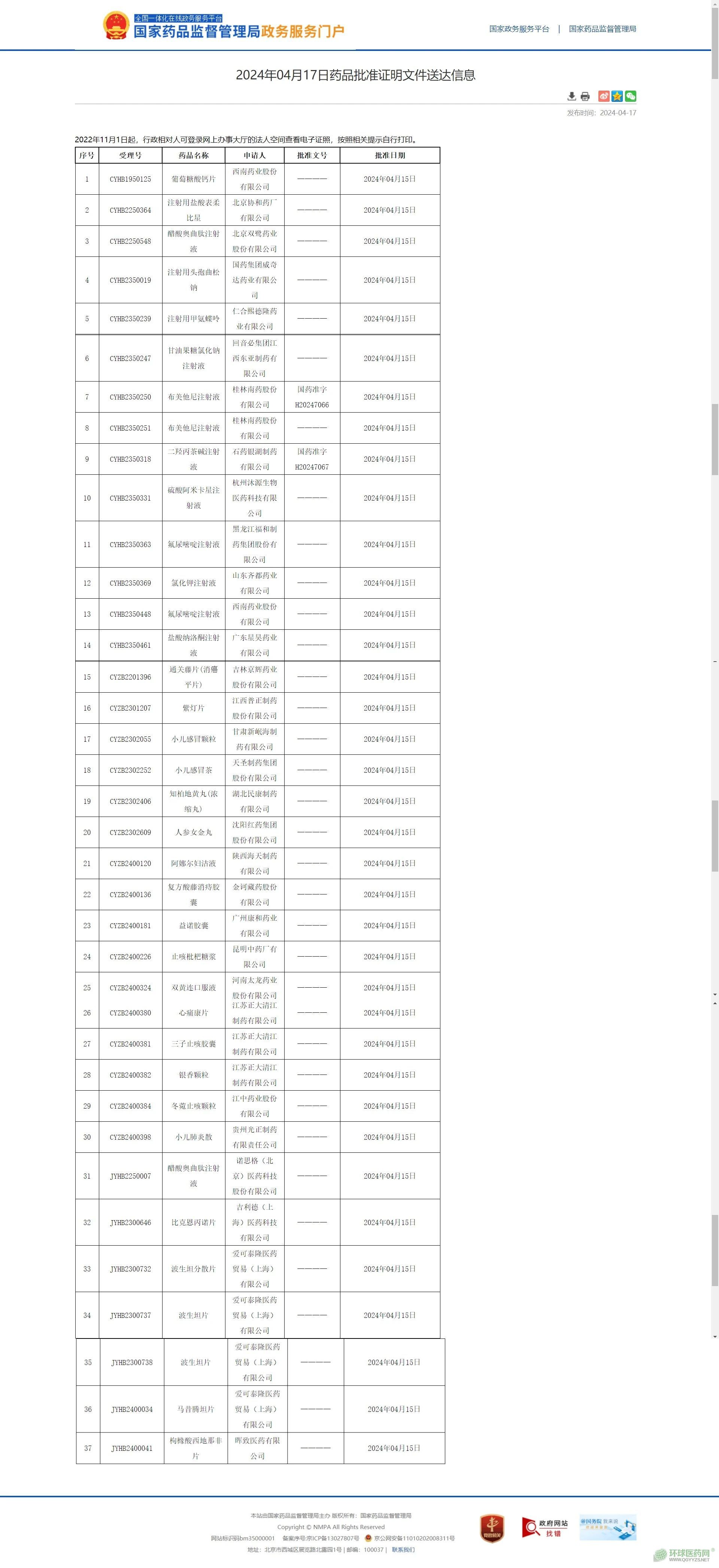 2024年4月17日,國家藥監(jiān)局官網(wǎng)發(fā)布藥品批準(zhǔn)證明文件,本批次共有36個受理號獲批,其中近30款報產(chǎn)申請受理號獲批。大多是競爭激烈的品種: